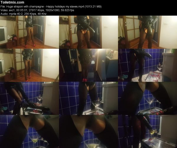 Huge strapon with champagne – Happy holidays my slaves