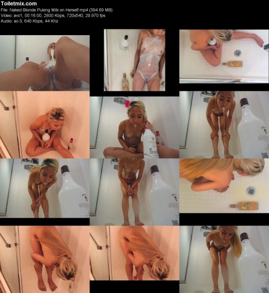 Naked Blonde Puking Milk on Herself
