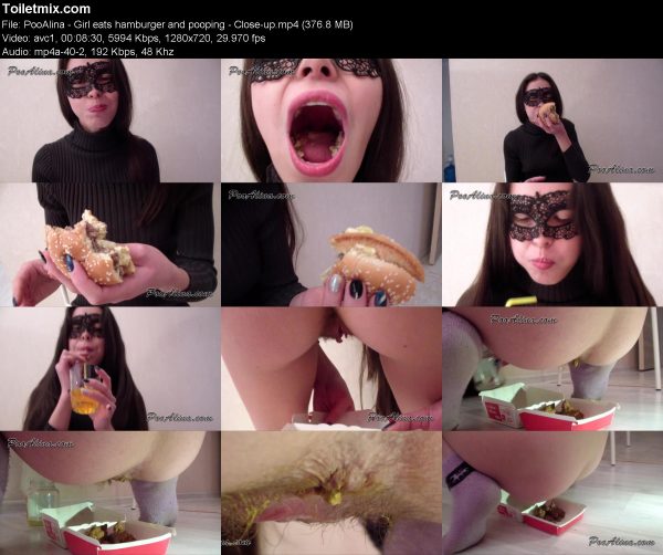 PooAlina – Girl eats hamburger and pooping – Close-up