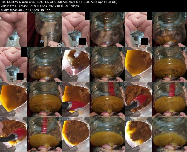 SSBBW Queen Siya presents a holiday-themed fetish performance, delivering “Easter chocolate” straight from her massive ass. Messy, shocking, and unapologetically dirty, this clip is a perfect treat for scat lovers and those who enjoy extreme curves combined with extreme fetish play.