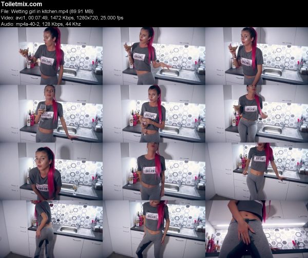Wetting girl in kitchen